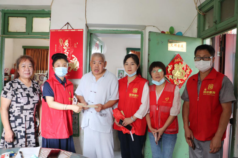 國信康養(yǎng)黨支部黨員干部、青年志愿服務(wù)隊(duì)一行人在華風(fēng)社區(qū)黨支部書記的帶領(lǐng)下,對轄區(qū)3位貧困年長男性老黨員逐一上門拜訪慰問,為老人送上慰問金、大米、牛奶等生活物資,同時也給他們送去濃濃的關(guān)愛和節(jié)日的祝福。
